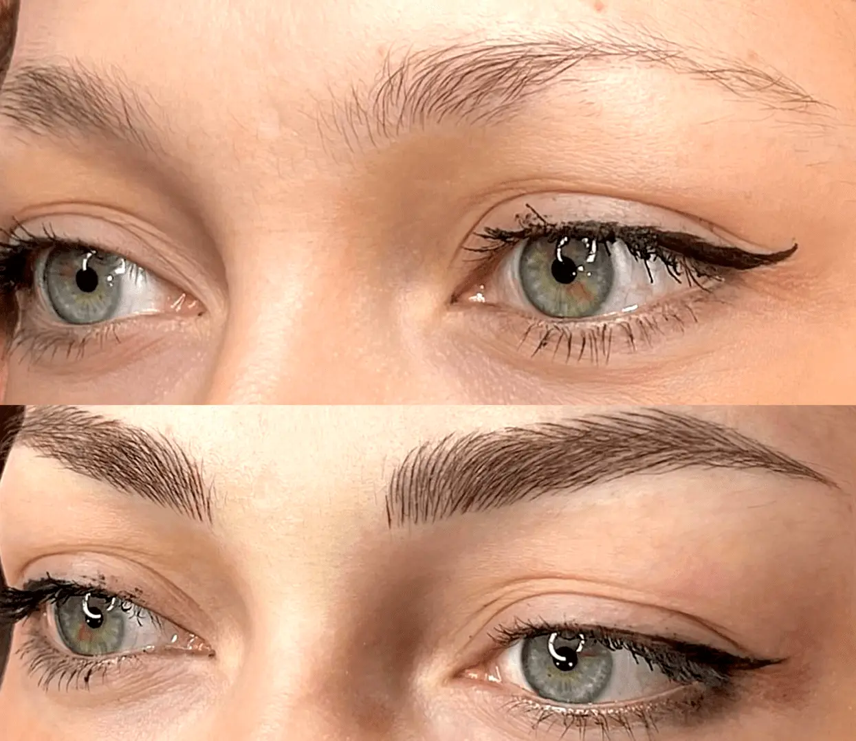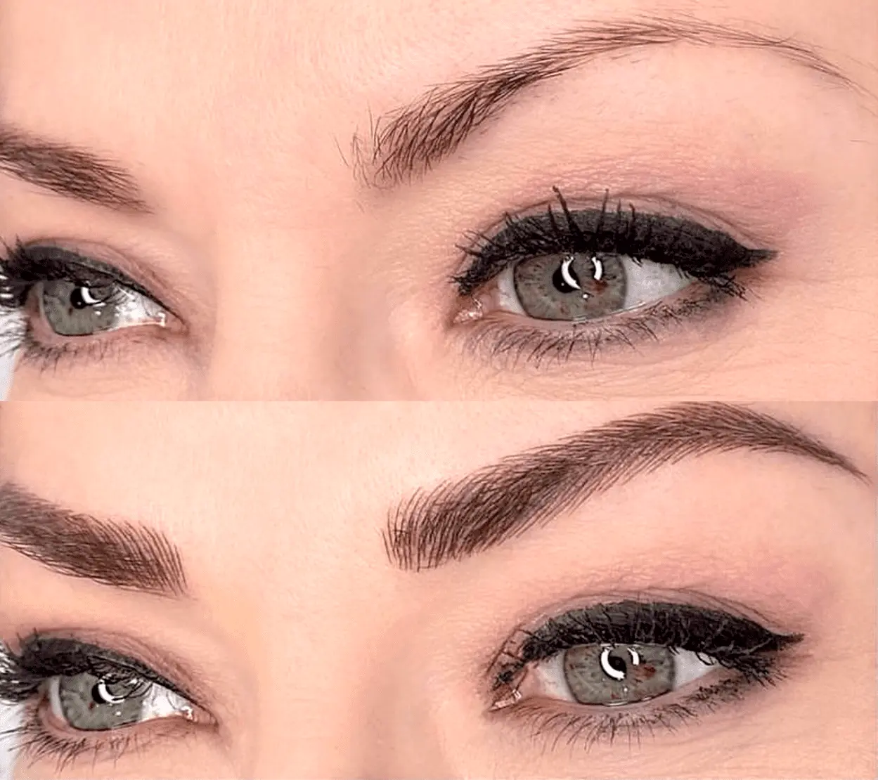 Nano brows – ultra-fine hair strokes made by PMU artists with a digital cosmetic tattoo machine.